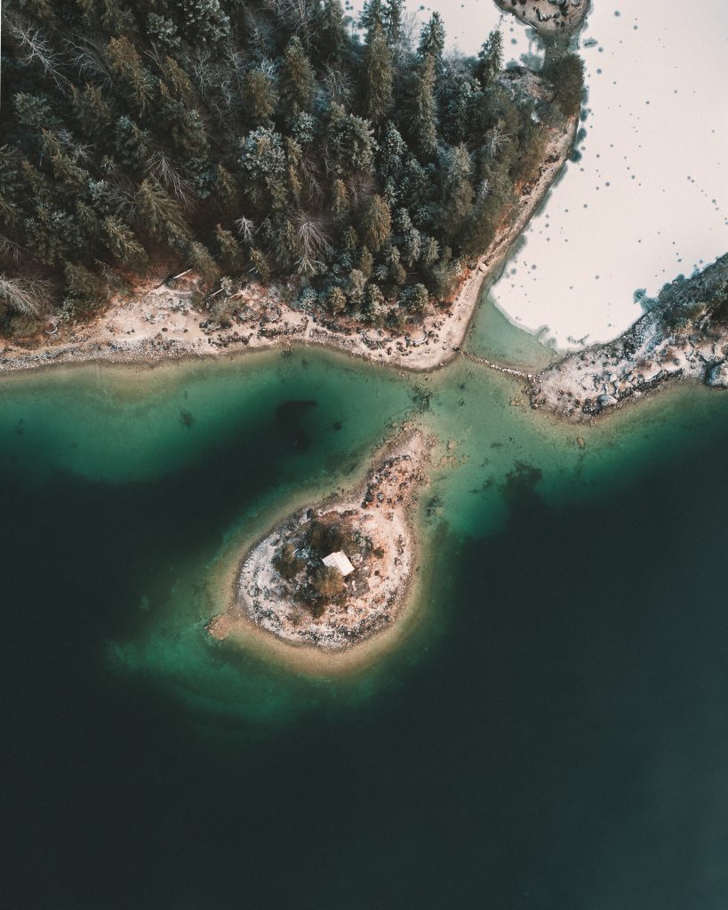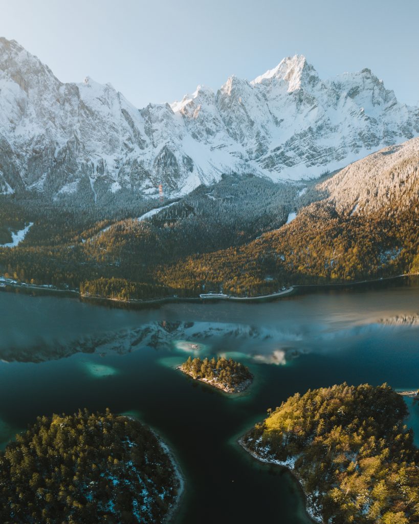 As I write this, the thought of that morning gives me goosebumps. It was magical, the skies were blue, the snow was fresh and a soft cool breeze was gently moving over our skin. The video starts by the shore of the lake, where I (Ben) introduce myself and give the viewer a brief description of where we are. Once the viewer is settled and drone flight is explained, we go into the drone flight sequence. Where the viewer flies majestically over the crystal blue lake, higher and higher. The tallest mountain in Germany, Zugspitze, towering by your side.